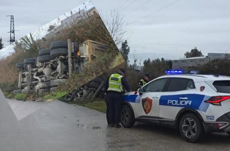Aksident rrugor në aksin Fier-Kallm, kamioni përfundon në kanal