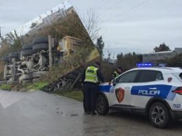 Aksident rrugor në aksin Fier-Kallm, kamioni përfundon në kanal