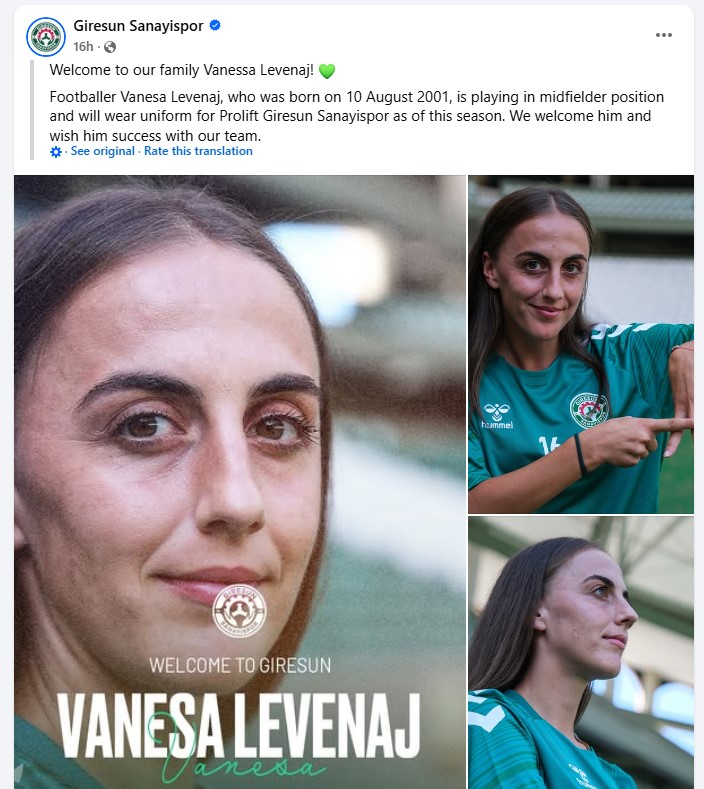 Vanesa Levenaj, mesfushorja e talentuar e Apolonise, sezonin e ri do te aktivizohet ne Superligen turke te futbollit per femra.
