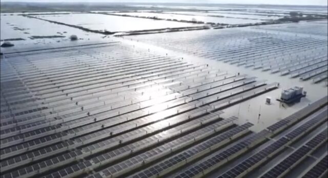 Parku fotovoltaik i Karavastasë, vepra gjeneruese më e madhe në vend e energjisë diellore është stakuar për shkak të përmbytjes masive.