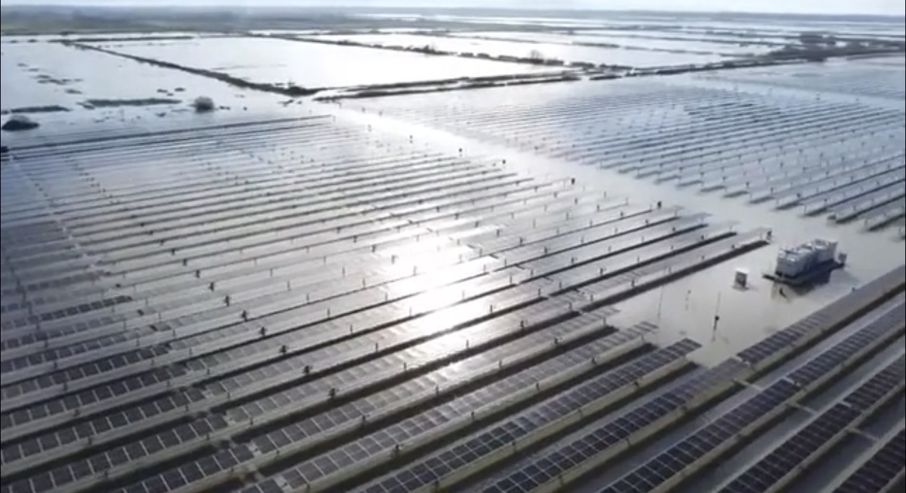 Në videon e mëposhtme pamjet tregojnë se uji ka vërshuar në të gjithë territorin e parkut diellor të kompanisë franceze Voltalia.