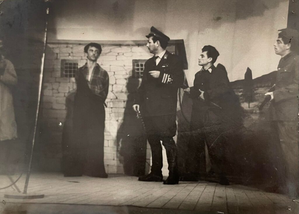 Trupa teatrale përbëhej nga aktorët amatorë Avdulla Rama, Mina Veshi, Llaqi Kola, Hysen Xheka, Jorgji Koshovari, Jorgji Panda, Jorgji Andrea, Sotir Argjendari, Stavri Poro, Andon Poro, Zoi Gjerazi, Nasi Bogo dhe Paskal Pogaçe.