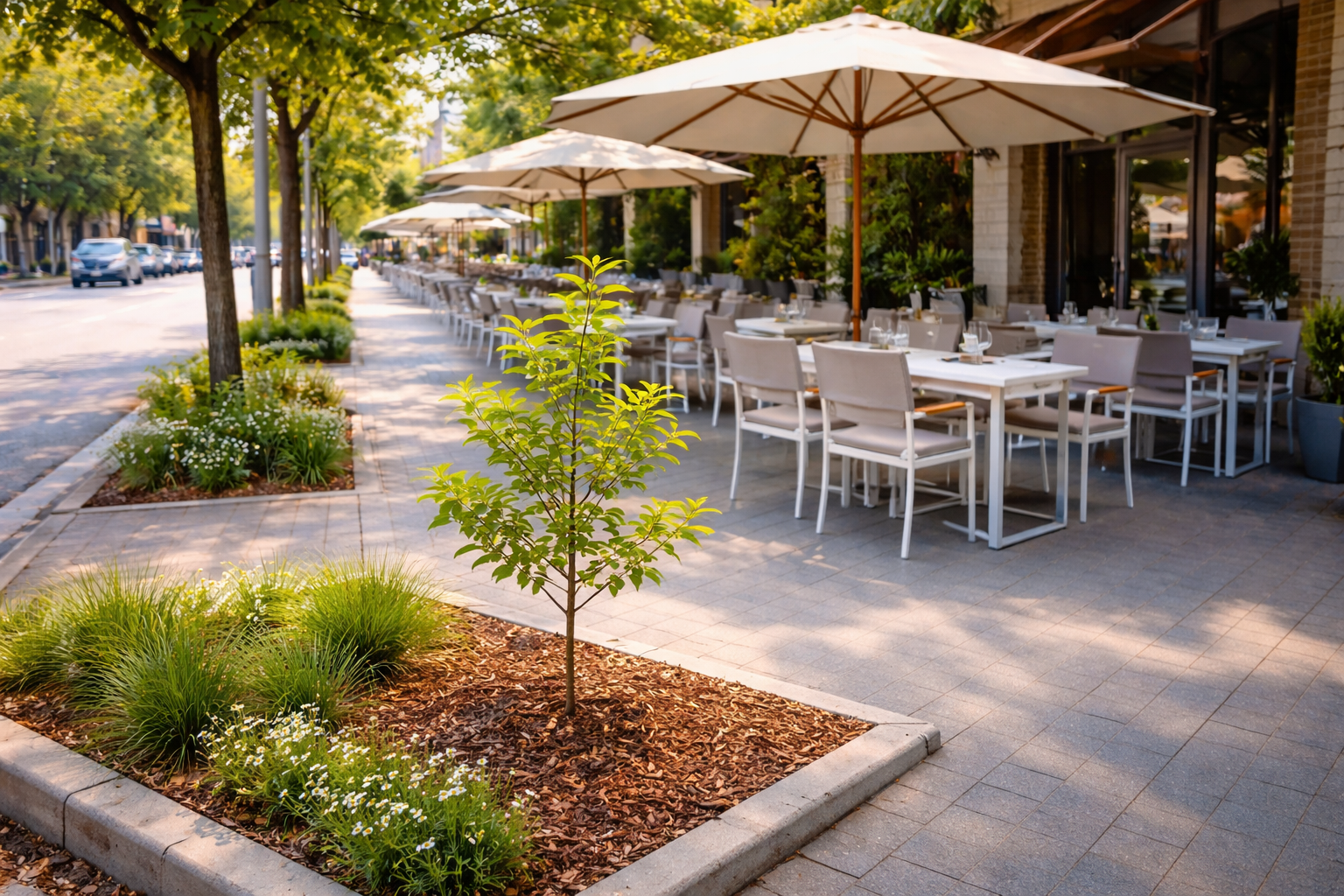 Baret, restorantet dhe hotelet mund të shfrytëzojnë deri në 25% të gjerësisë së trotuarit për vendosjen e tavolinave dhe karrigeve për qëllimi biznesi.